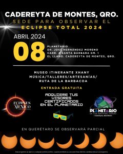 El planetario Dr. José Hernández Moreno de Cadereyta de Montes será sede para observar el eclipse parcial de Sol, el próximo 8 de abril, evento astronómico para el que se espera una asistencia estimada en más de 600 personas.