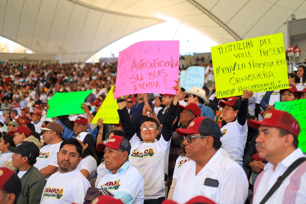 Con la Primavera Oaxaqueña, el cultivo de maíz pasó de 500 a 800 mil toneladas, que representa el 90 por ciento del consumo estatal de este grano al año; además, la entidad es líder nacional en producción de mezcal, papaya y mango.