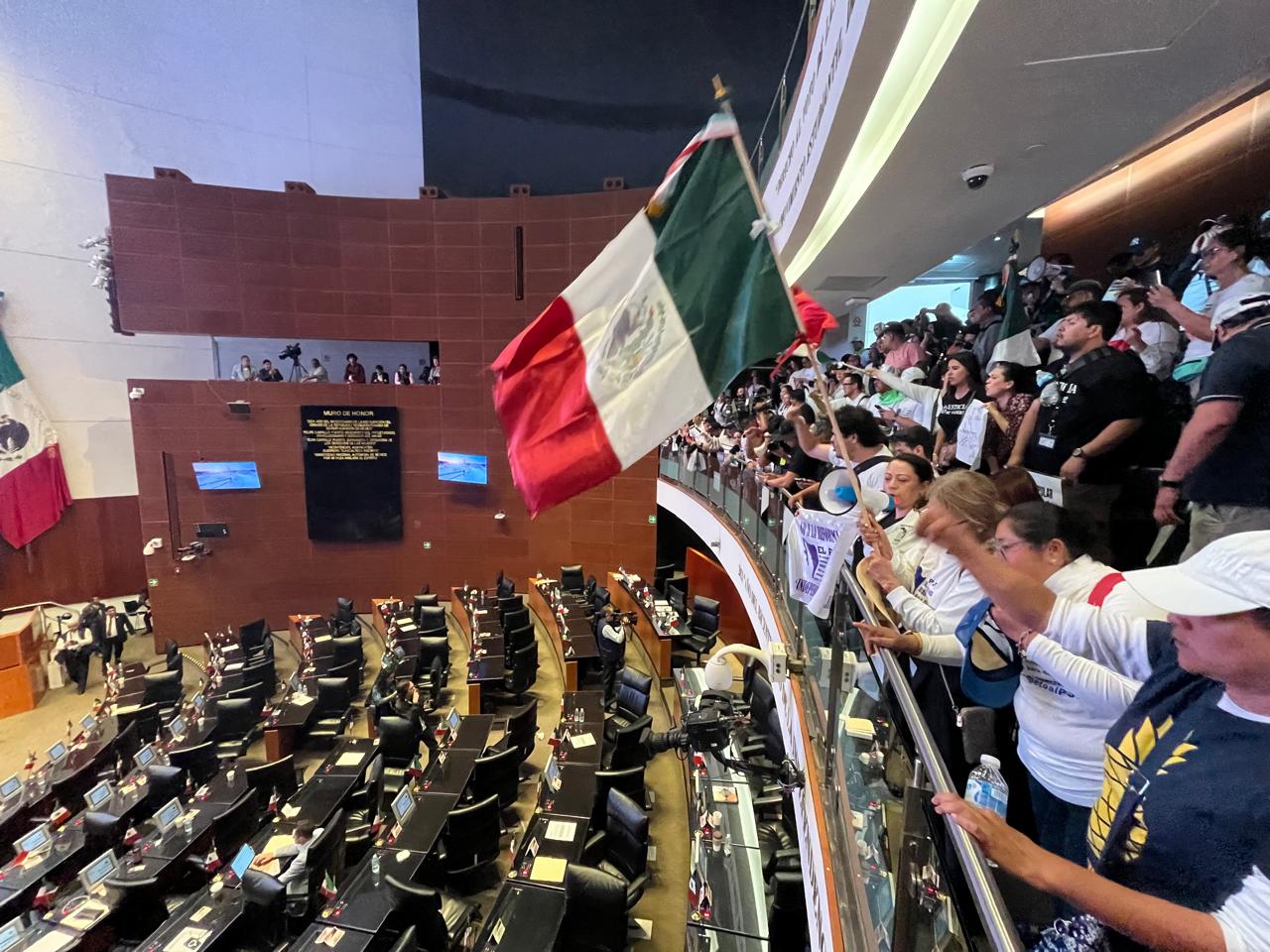 Durante la sesión del Senado, los manifestantes lograron ingresar al edificio, ondeando banderas de México y portando pancartas en contra de la reforma. Los senadores de oposición parecían alentar la protesta, mientras que el presidente del Senado, Gerardo Fernández Noroña, declaró un receso en la sesión. “Tenemos información de que ingresó un número de manifestantes al interior de este inmueble, están en la explanada principal”, anunció Fernández Noroña.