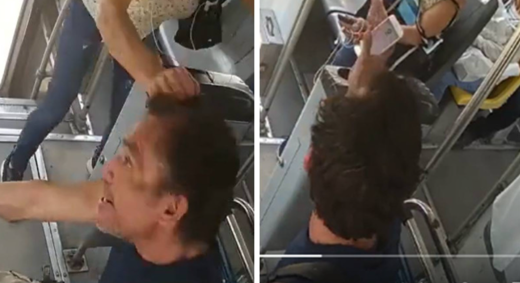 “En el video se observa como el chófer va bien feliz cantando “sombra aquí, sombra allá” de mecano, cuando de repente la doña se lo desgreña.” Eso es lo que la cuenta de Twitter indicó al dar a conocer la noticia.